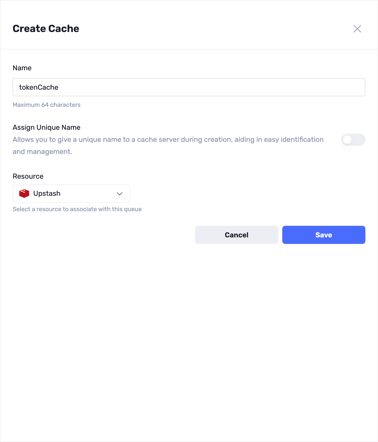 Cache Name: Enter a descriptive name for your cache server. This name should reflect the purpose or functionality of the cache within your application.