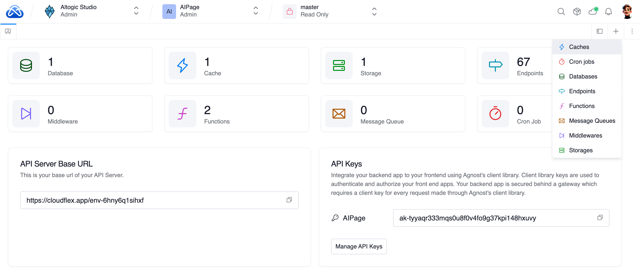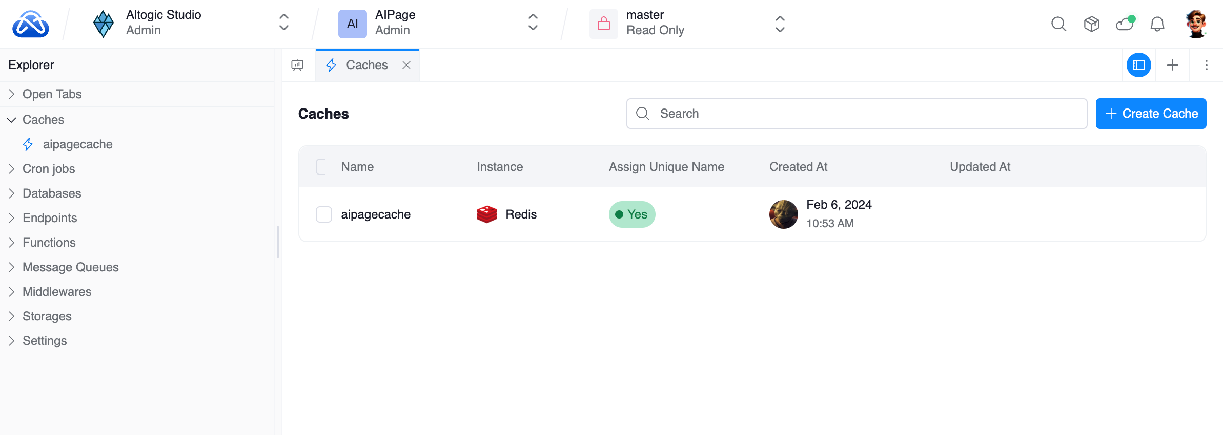 Once you've created your cache instance, you will see a list of cache servers available in your Agnost environment. You can manage these cache servers by clicking on their names.