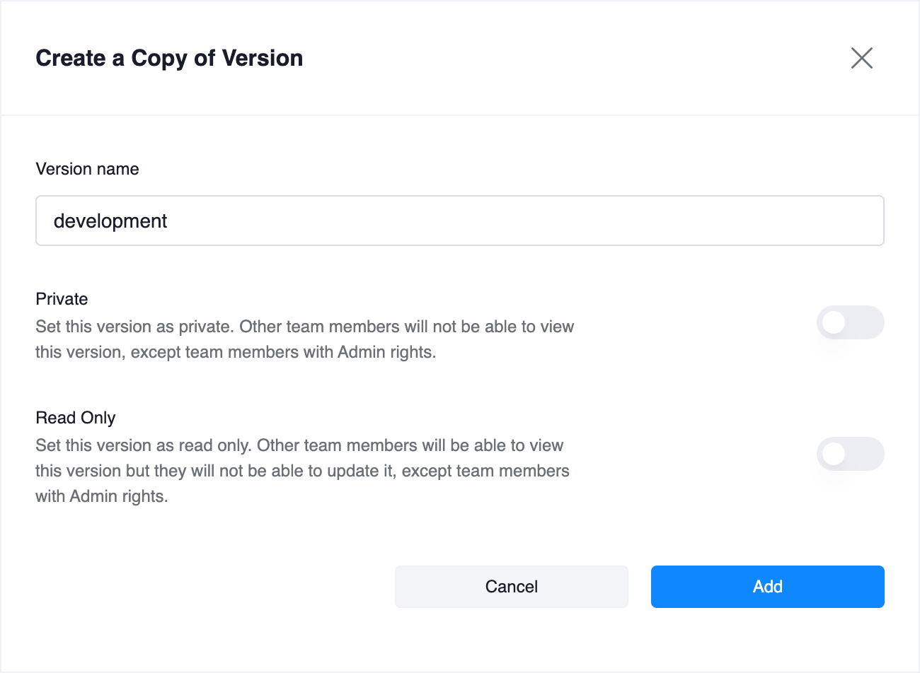 - Create a Version: For each application, you can create multiple versions. These versions work similar to branches in git, allowing you to work on different features or bug fixes independently.