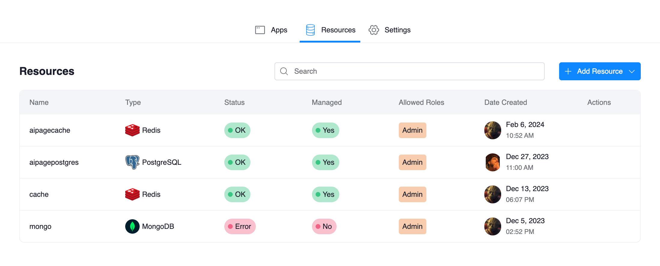 Add Resourcebutton and choose the type of resource you want to add. You'll need to provide necessary details for the resource. If it's a database, for instance, you might need to provide details like the database type (MySQL, Oracle, MSSQL, etc.), host, port, username, password, etc. You also have the option to connect to an existing resource or create a new one. For details on how to define resources, refer to the Resource Definition