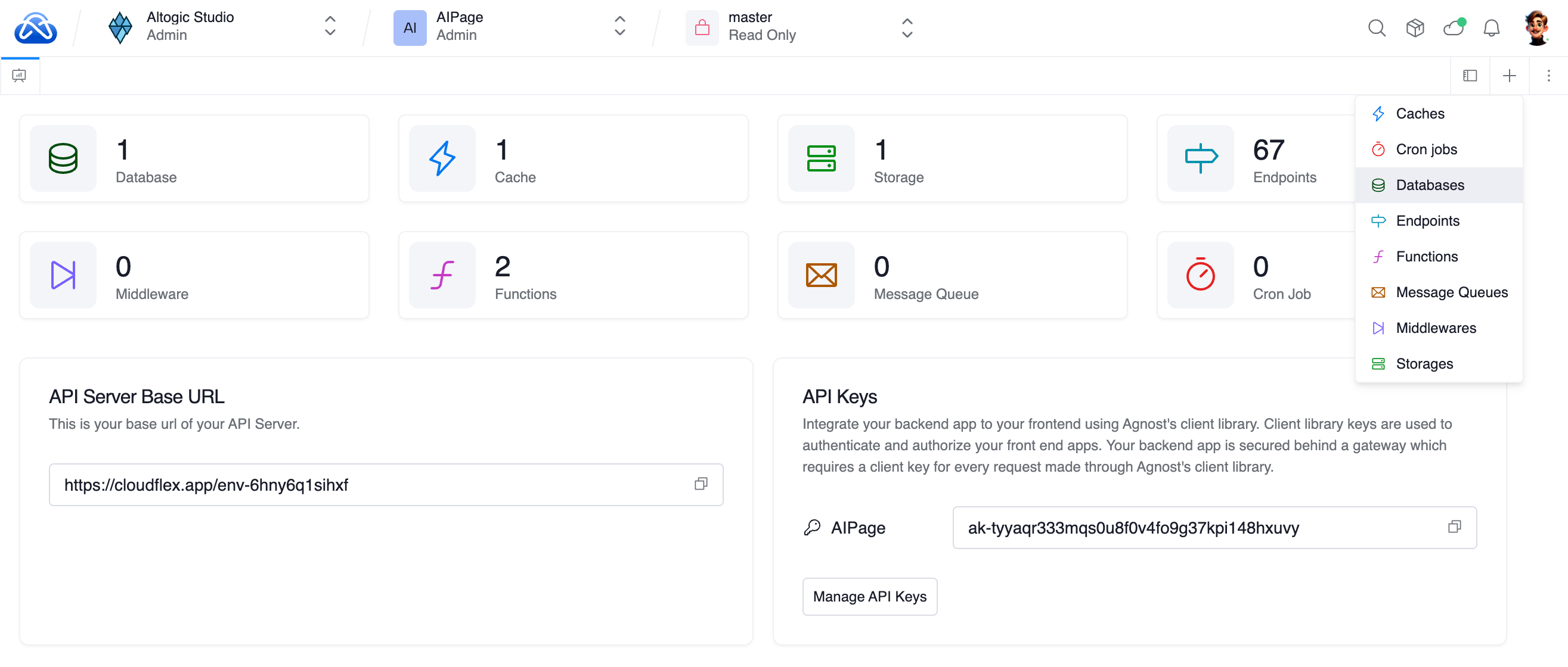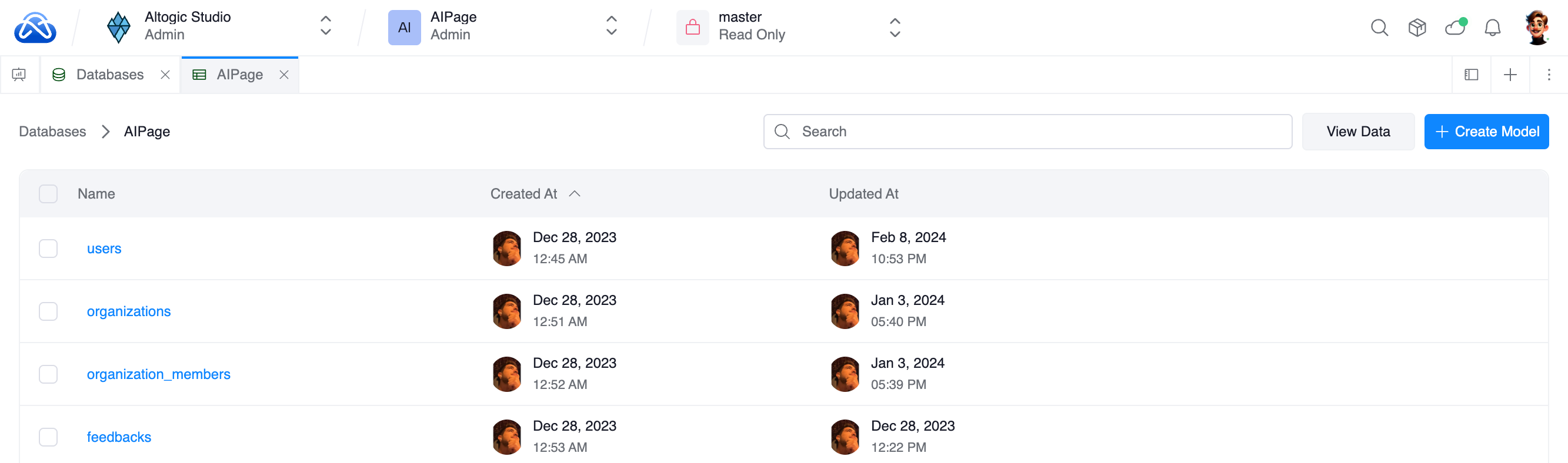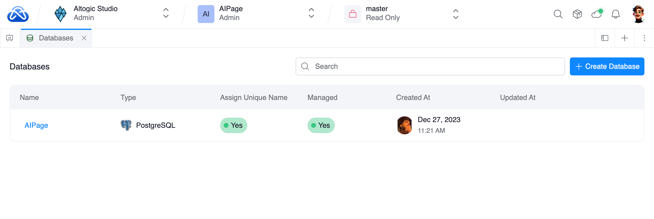 Then click on the Create button to create your new database. Agnost will then create the database and make it available for use within your application. Click the name of the database to access it, where you can define your data model.