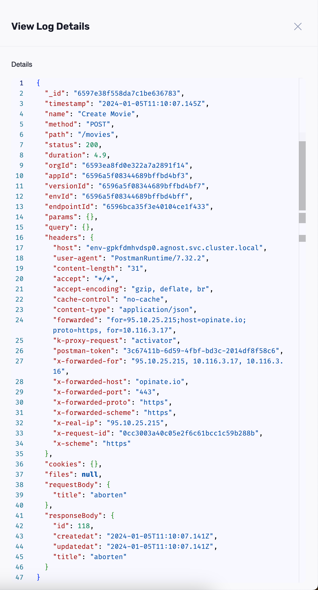 - View Request and Response Pair: For each endpoint, you can access detailed information, including the HTTP method, status, and response time. This data enables you to identify suspicious activity, troubleshoot issues, and understand user interactions.