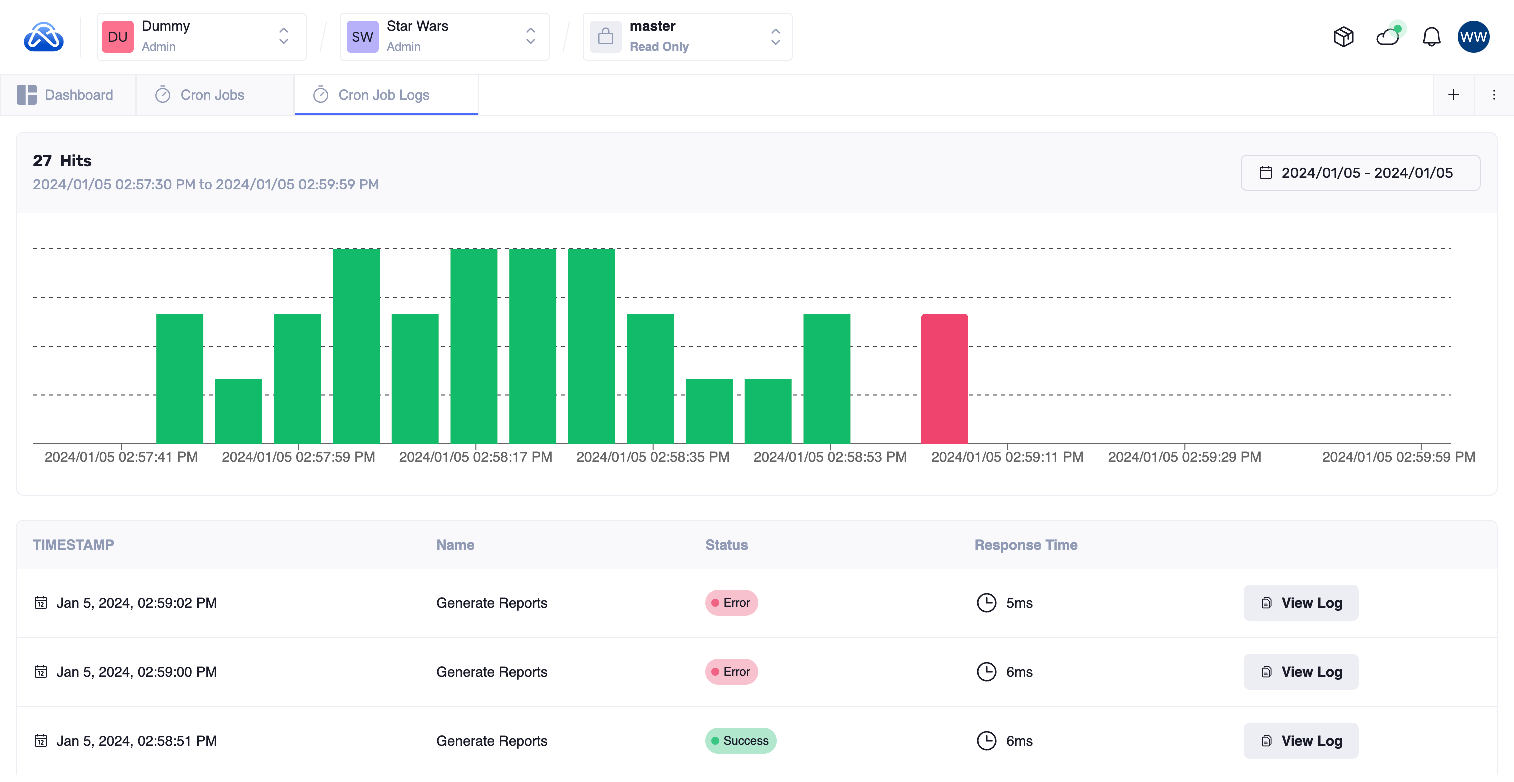 Performance Tracking: View performance charts over time and access detailed logs for each scheduled task. This comprehensive view ensures you have complete visibility into task health and performance.