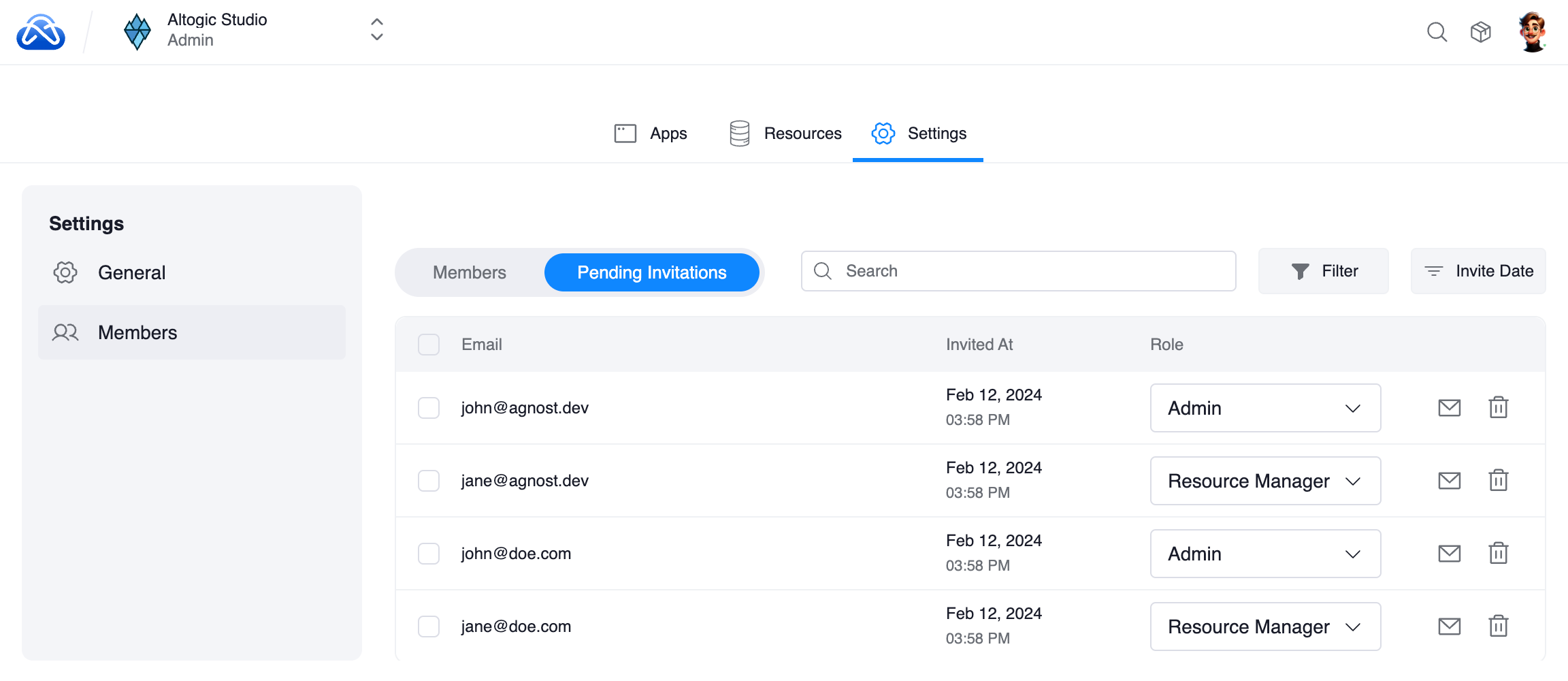 After providing the necessary member details, click the Invite button to dispatch the invitations. Invited members will receive an email notification containing an invitation link.